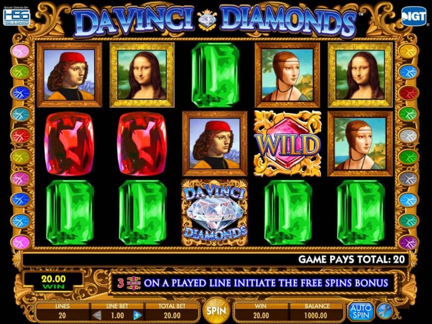 We’re not 100% sure exactly what the connection between Leonardo Da Vinci and diamonds is, or if there even is one. Well, either way, there is now thanks to IGT’s online slot Da Vinci Diamonds which you can play here at Mega Reel.