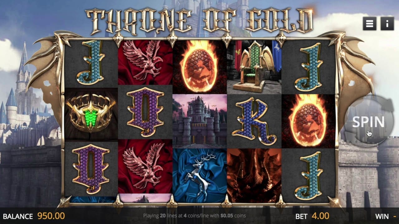 Throne of Gold online free casino slots is a dramatically themed slot based on a fantastical story of dragons, rulers and a throne to claim. The storyline presents two houses, one represented by a falcon and the other by a stag, both undergoing a war for one Dragon Throne.